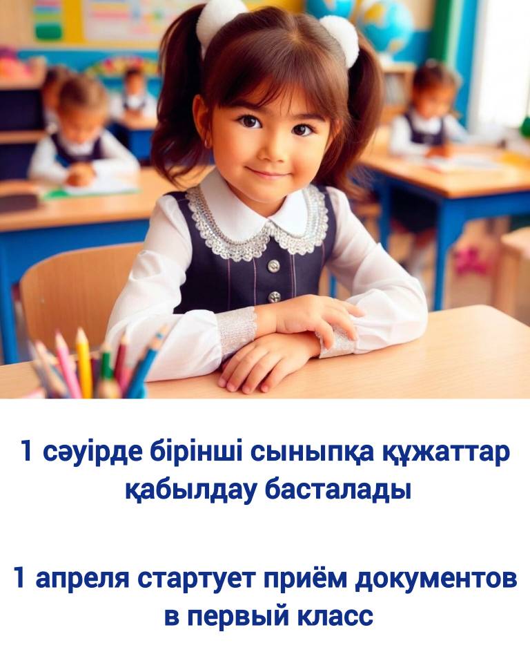 Бірінші сыныпқа қабылдау үшін өтінімдерді қабылдау 1 сәуірде басталып, 2026 жылдың 31 тамызына дейін жалғасады. Ата-аналар баланың құжаттарын egov.kz электрондық үкімет веб-порталы арқылы тапсыра алады.