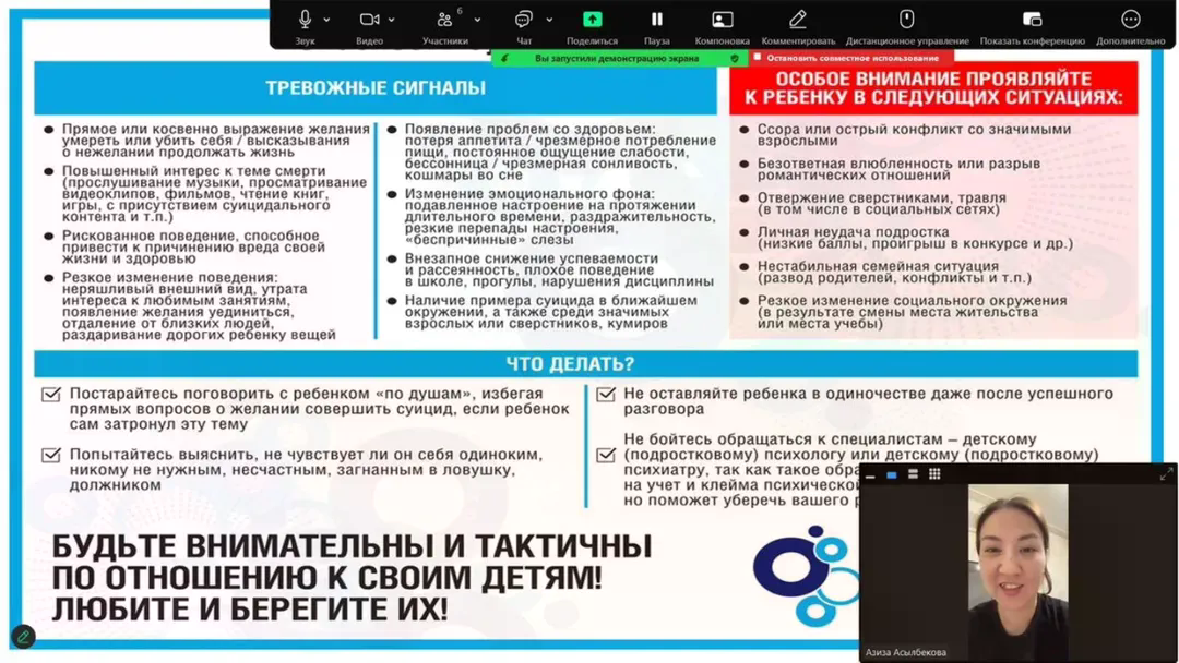 Жасөспірімдер арасында дәрілік препараттарды қолдану арқылы суицидтік әрекеттердің жиілеуіне байланысты "балалар мен жасөспірімдер арасында дәрілік заттармен уланудың алдын алу"тақырыбында онлайн-ата-аналар жиналысы өткізілді.
