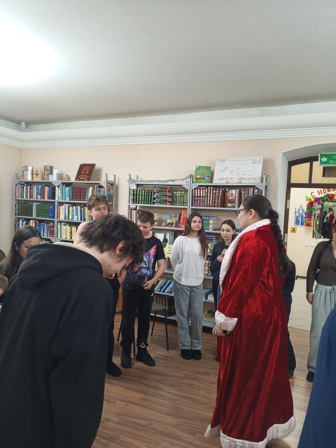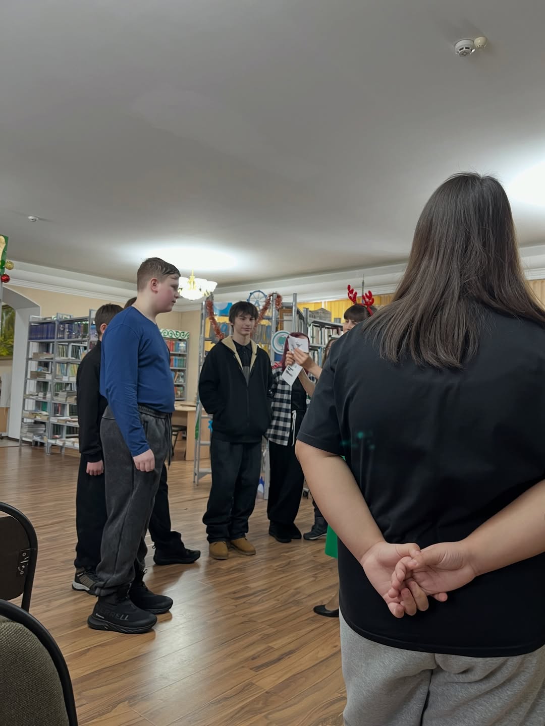 Занятость учащихся в период зимних каникул. В период зимних каникул учащиеся 7 «А» и 7 «Б» классов посетили библиотеку имени Ы. Алтынсарина. Для школьников было организовано новогоднее познавательно-игровое мероприятие, включающее тематические игры, конкурсы и задания. Мероприятие способствовало созданию праздничной атмосферы, развитию интереса к чтению, коммуникативных навыков и организованного досуга учащихся.