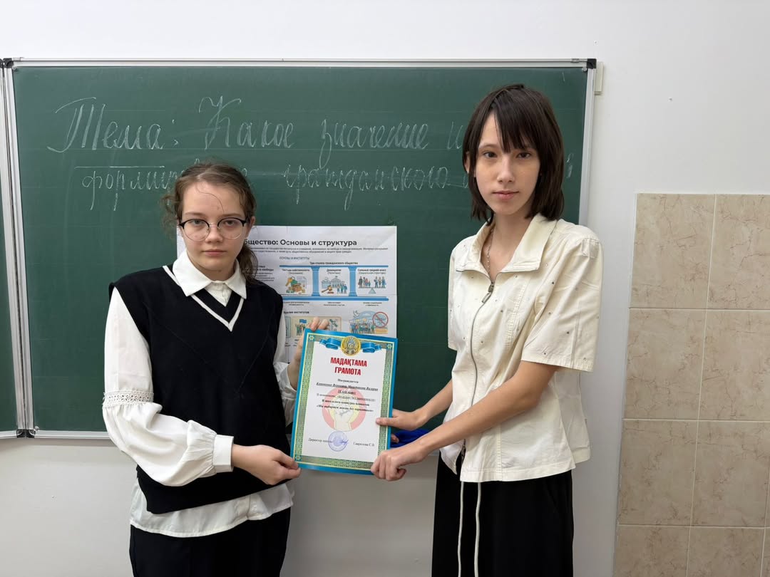 В рамках месячника «Закон и порядок» в начальных классах прошли часы добропорядочности под единым названием «Честность и справедливость». В ходе проведения члены добровольного школьного клуба «Адал Ұрпақ» представили ребятам модель порядочного человека, рассказали о таких понятиях как «честность» и «справедливость», провели игру «Равноценный обмен». Также в ходе мероприятия участники ответили на вопрос правовых ситуаций «Как бы поступил я?»
