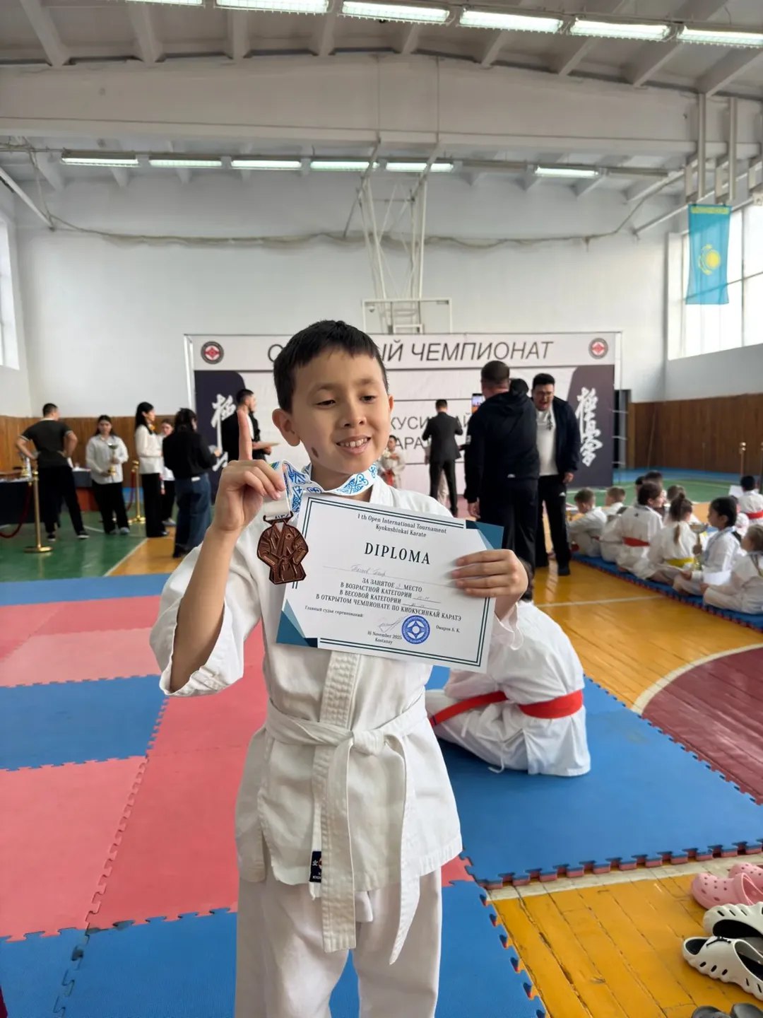 Киокусинкай каратэ бойынша ашық чемпионатта 10-11 жас аралығындағы 5 Б сынып оқушысы Тагаев Таир 3 жүлделі орынға ие болды