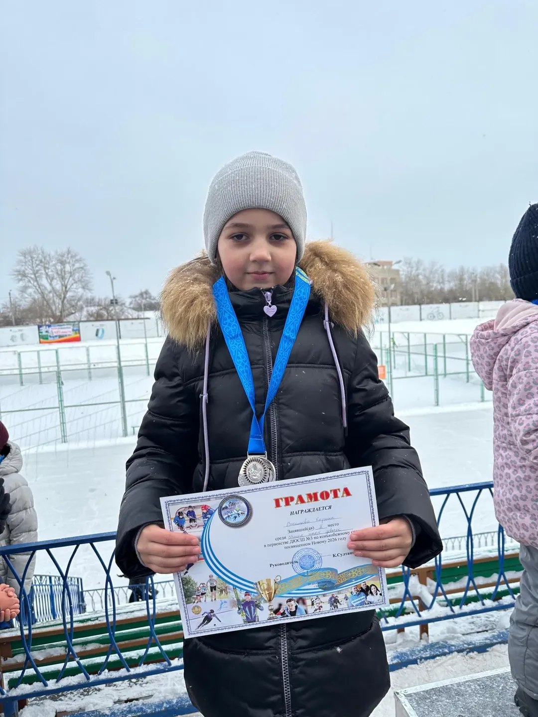 3 " А " сынып оқушысы Васильева Каринаны конькимен жүгіру спортынан №3 БЖСМ Біріншілігінде тамаша өнер көрсетуімен құттықтаймыз! Жаңа жылға арналған жарыстар 28 желтоқсанда өтті және Каринаға бірден екі лайықты марапат әкелді: