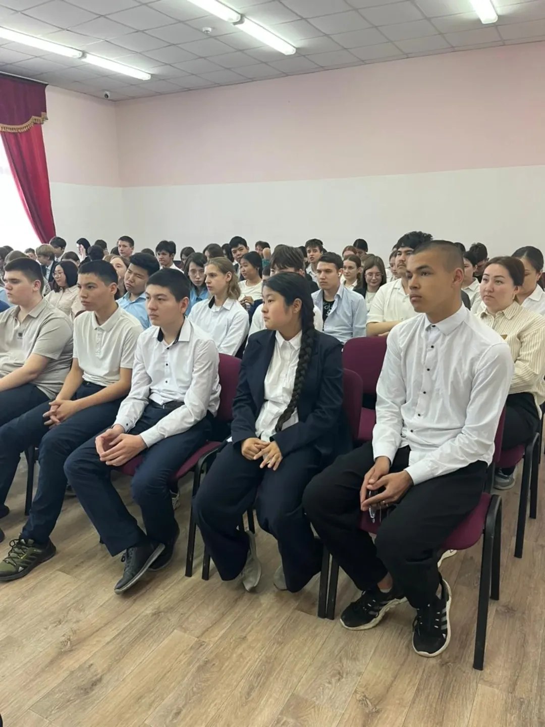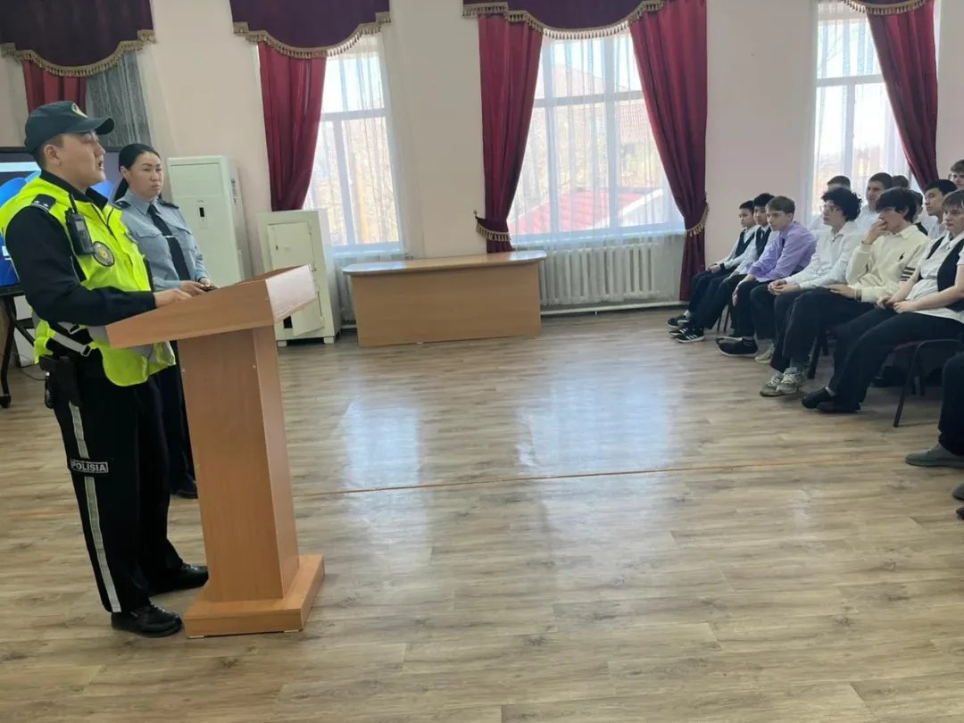 «Жол қауіпсіздігі — бәрінен маңызды! Бүгін Қостанай қаласы полициясының өкілдері жоғары сынып оқушыларымен маусымның өзекті тақырыбы — электрлі самокатпен жүру ережелерін талқылау үшін кездесті. Әңгімелесуге Қостанай қ. ПБ ПБП инспекторы, полиция лейтенанты Д.Р. Ғалымбек және Қостанай қ. ПБ ЖҚБ ЮПБ аға УИП, полиция майоры А.Б. Бейсенова қатысып, жасөспірімдерге жауапкершілік пен сақтық шаралары туралы ескертті».