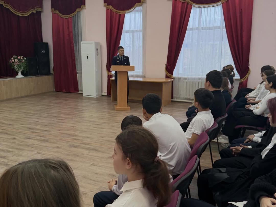 20 января 2026 года Старшим оперуполномоченным УПЭ ДП Костанайской области майор полиции Тумурзин Е. Е. Была проведена лекция для 6-7 классов, по теме: «Лжетерроризм и разъяснение статьи 273 УК РК» өткізді.