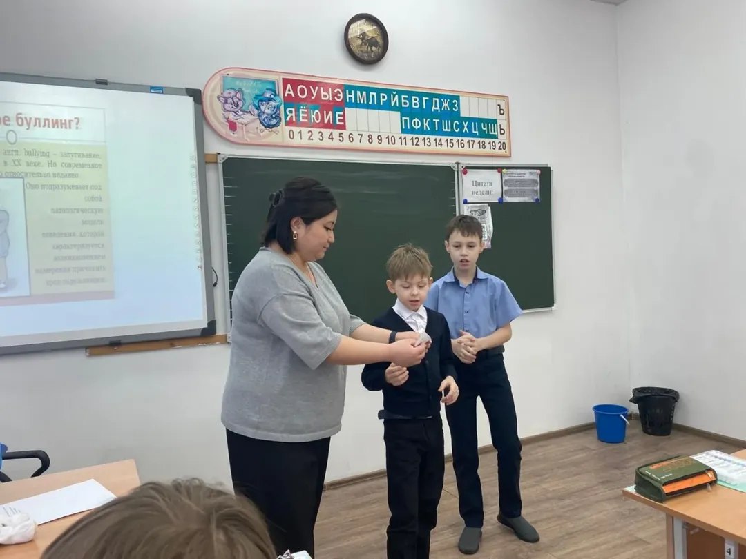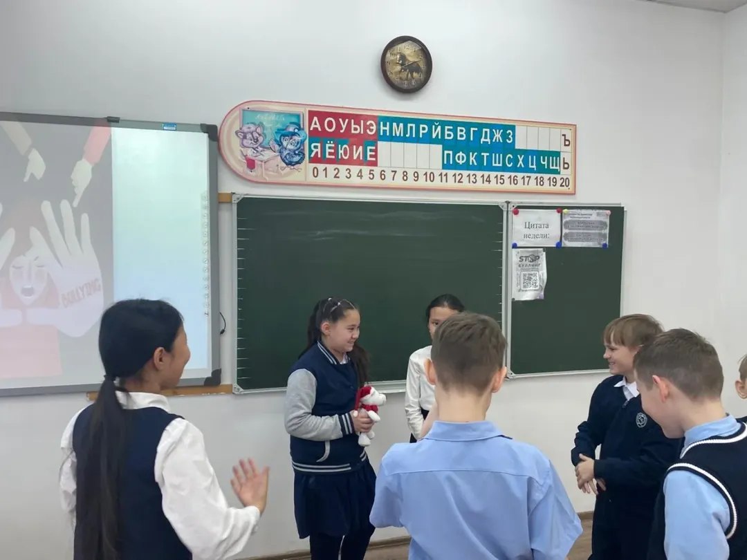В рамках реализации идеологемы «Заң мен тәртіп» («Закон и порядок») педагогом-психологом Алдамасовой А.Ж. был проведён классный час в 4 классе на тему «Буллинг и кибербуллинг».