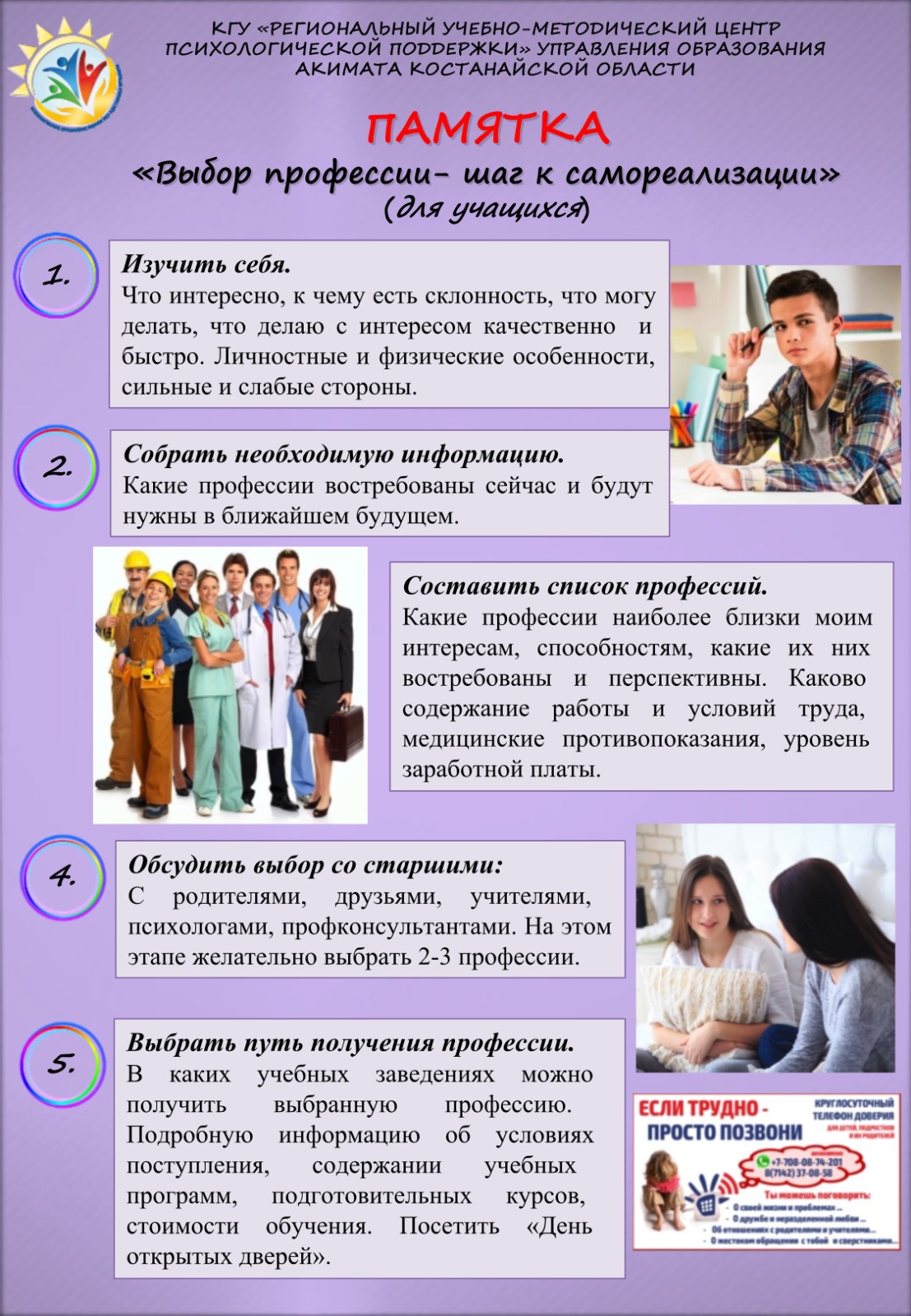Біз оқушыларға арналған жадынама дайындадық. Ол болашақ мамандықты сабырмен әрі саналы түрде таңдауға көмектеседі 👇