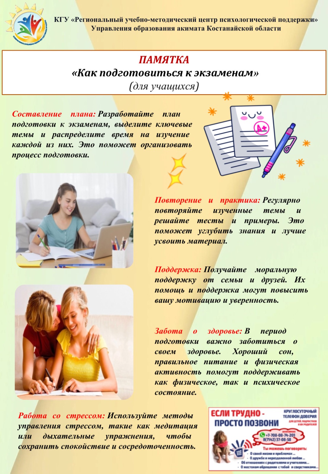 Емтихан - бұл қорқыныш емес, өз біліміңді көрсету мүмкіндігі. Ең бастысы - жүйелі дайындық пен өзіңе қамқорлық
