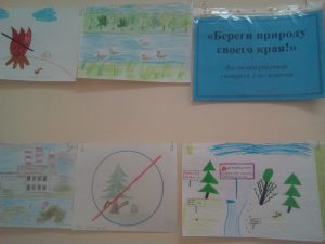 5 сәуірде бірінші қабаттың рекреациасында 2- сынып оқушылары үшін « Өз өлкеңнің табиғатын аяла!» суреттер көрмесі ұйымдастырылды