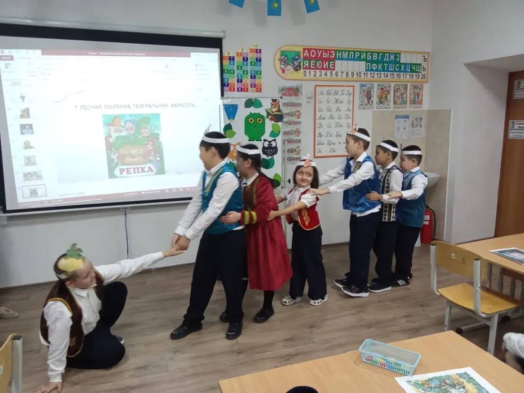 15 желтоқсанда бастауыш сыныптар онкүндігі аясында әдеби оқу күні өтті. 3 "Б" және 1 "В" сынып оқушылары ертегі орманы арқылы саяхатқа негізделген «Ана жерде, Белгісіз жолдарда» іс-шарасына белсенді қатысты. Серуендеу барысында балалар ертегі кейіпкерлерімен байланысты тапсырмалар, жарыстар бойынша жұмыс істеді. (флэш-моб, жұмбақтар және басқалар). Балалар «Шалқан» ертегісін сахналауға қатысқан «Театр каруселі» қойылымына ерекше қызығушылық пен көңіл бөлді. Сыныптың дизайны мен суреттер көрмесі жағымды көңіл-күй мен жағымды эмоцияларға ықпал етті. Үзілісте оқушылар басқатырғыштарды қызықты түрде жинап, ертегі кейіпкерлерінің жұмбақтарын болжауға, жаңа ертегі туындыларын білуге ниет білдірді.