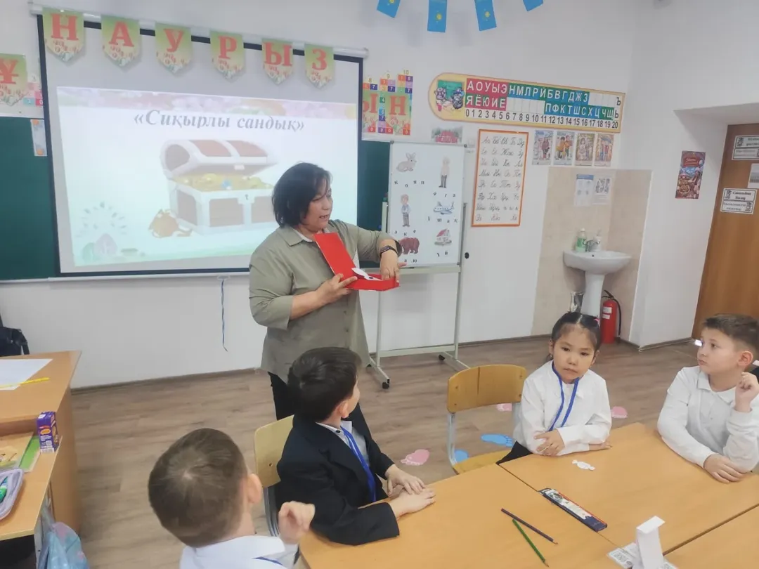 2026 жылдың 12 наурызда Қазақ тілі мен әдебиеті онкүндігі аясында 1 «Б» сынып оқушылары арасынды «Қазақ тілі - достық тіл» зияткерлік сайыс өткізілді.Мақсаты: Қазақ тіліне деген қызығушылығын арттыру, сөздік қорын молайту, тіл арқылы достық пен бірліктің маңызын түсіндіру. Ойын барысында оқушылардың тілдік дағдыларын дамыту, бір-бірімен ынтымақтастықта жұмыс істеуге және өз ойын еркін жеткізуге үйрету.
