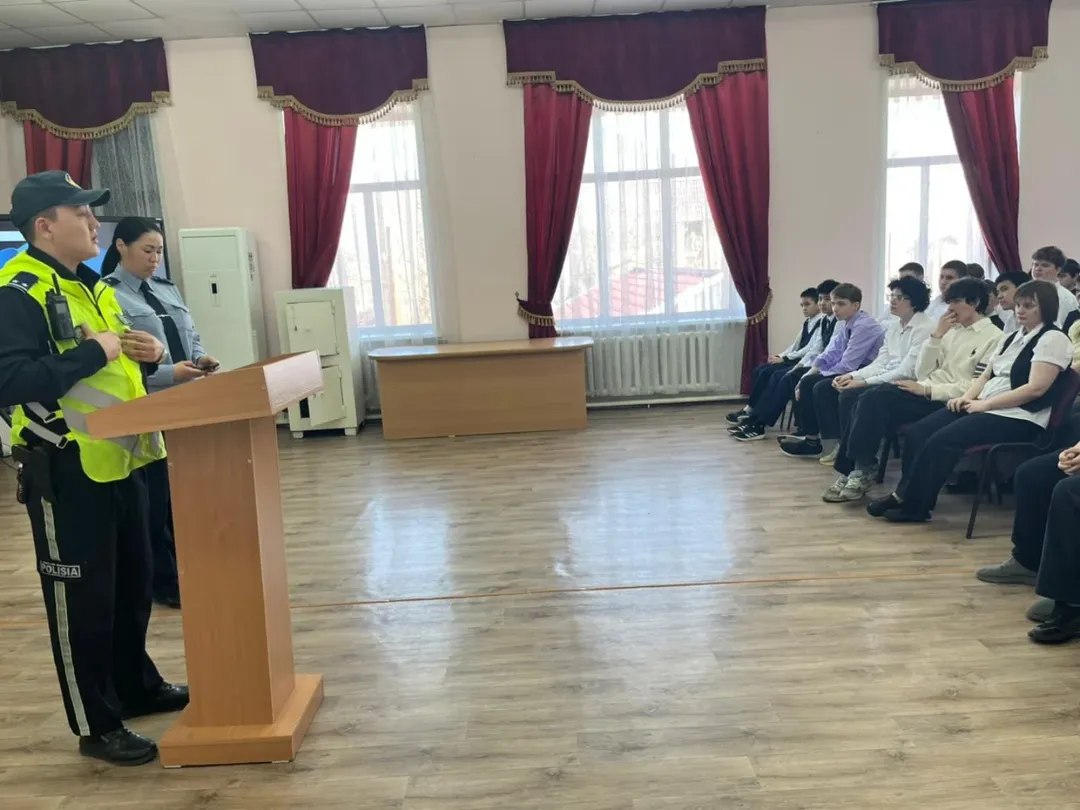 «Жол қауіпсіздігі — бәрінен маңызды! Бүгін Қостанай қаласы полициясының өкілдері жоғары сынып оқушыларымен маусымның өзекті тақырыбы — электрлі самокатпен жүру ережелерін талқылау үшін кездесті. Әңгімелесуге Қостанай қ. ПБ ПБП инспекторы, полиция лейтенанты Д.Р. Ғалымбек және Қостанай қ. ПБ ЖҚБ ЮПБ аға УИП, полиция майоры А.Б. Бейсенова қатысып, жасөспірімдерге жауапкершілік пен сақтық шаралары туралы ескертті».