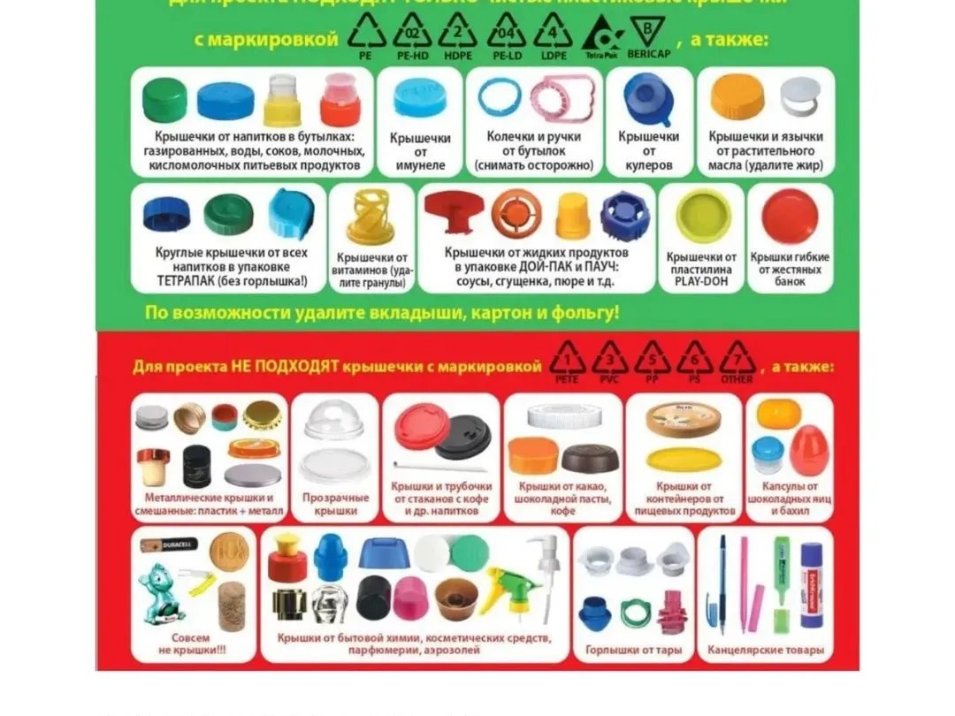 Пожалуйста, обращайте внимание на качество собираемого материала. Крышечки должны быть чистыми и без посторонних вкладок (вкладышей, наклеек), чтобы их можно было передать на переработку.